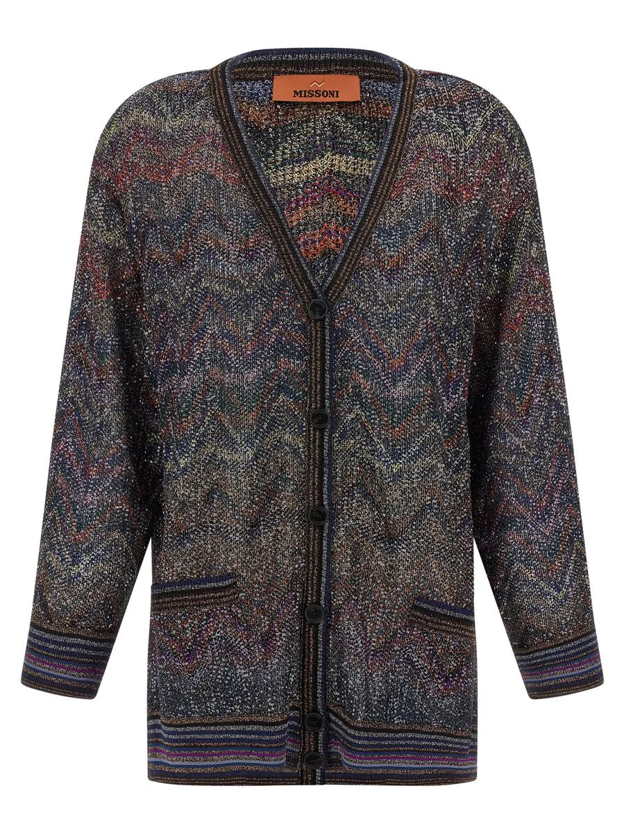 Caperdoni cardigan in viscose blend with zigzag pattern with sequins and lame filaments, V-neck, front button closure, pockets, long sleeves with cuffs and dropped shoulder Gender: Women Material: 47% VISCOSE 26% POLYAMIDE 21% POLYESTER 6% AF Color: MULTICOLOR Made in: Italy Product ID: DS25WM0TBC005GS91P6 *Import tax/duty will be calculated at checkout (If applicable)