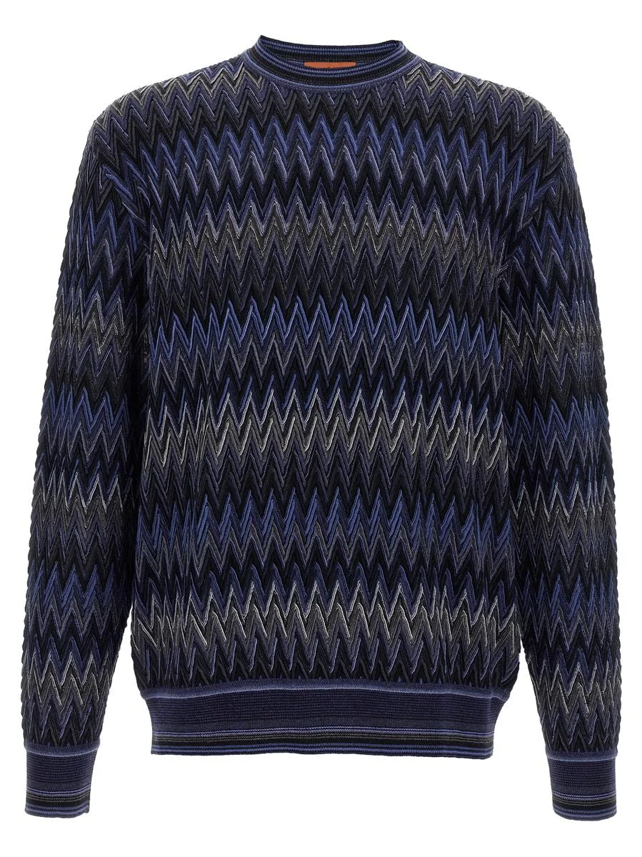 Zigzag pattern wool sweater, crew neck, long cuffed sleeves Gender: Men Material: 100% WOOL Color: BLUE Made in: Italy Product ID: US25WN0EBR012YS91P3 *Import tax/duty will be calculated at checkout (If applicable)