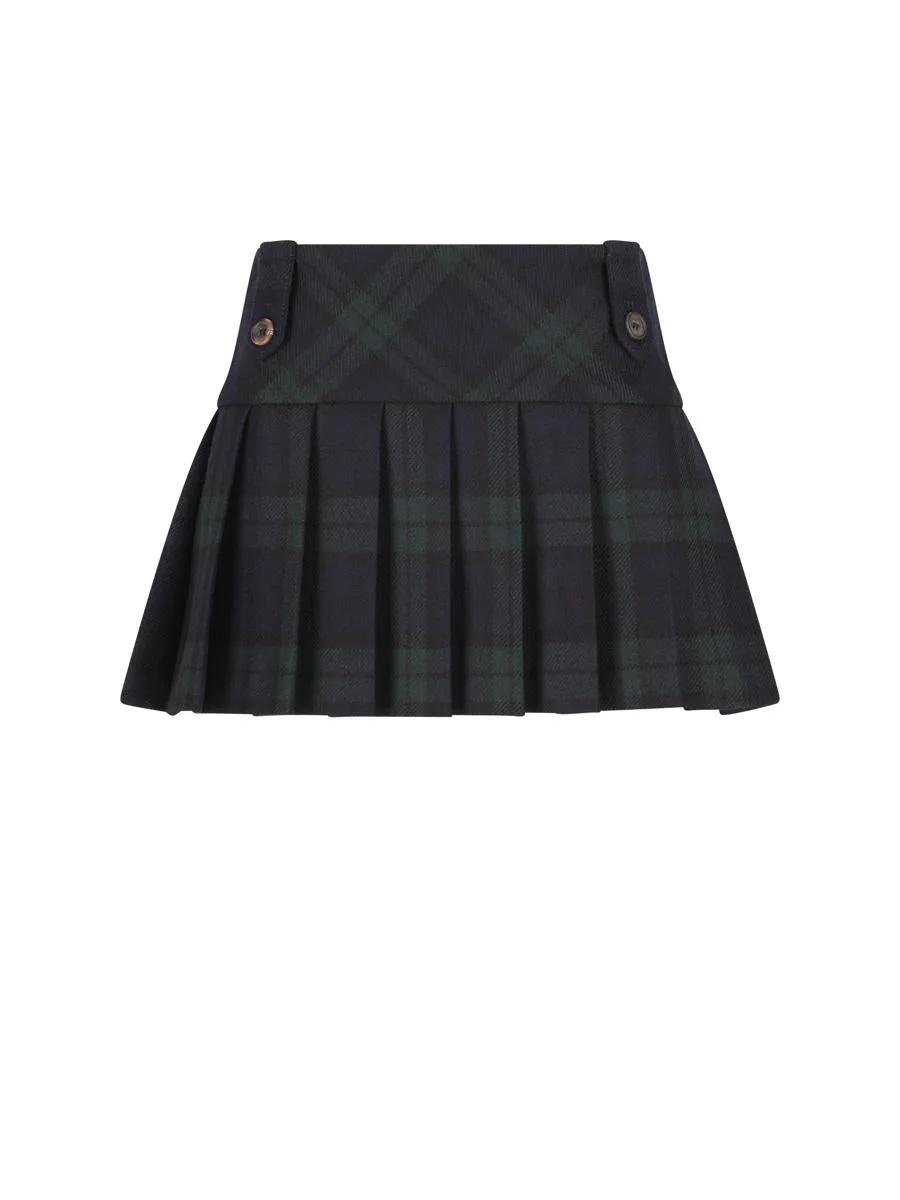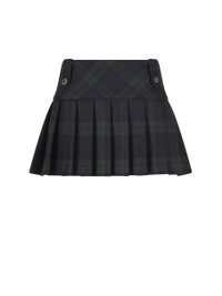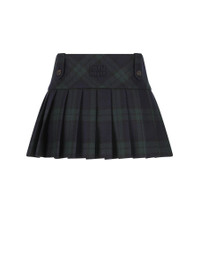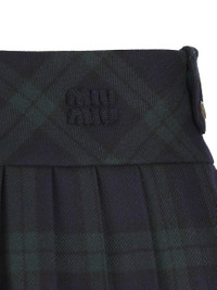 Miu Miu pleated skirt in virgin wool with tartan pattern in dark tones, with a strong collegiate appeal. The structured construction and mini line enhance the silhouette with a bold and sophisticated style. Decorative buttons at the waist complete the look with a distinctive touch. An iconic preppy-inspired garment, perfect for creating contrasts between classic and contemporary. - Material: 100% virgin wool - Color: blue and green - Tone-on-tone tartan pattern - Pleated mini line - Decorative button details at the side - Tailored finish - Made in Italy - Item code: MG253417V7F0D3Z Gender: Women Material: 100%VIRGIN WOOL Color: BLUE+GREEN Made in: Italy Product ID: MG253417V7F0D3Z_AI25 *Import tax/duty will be calculated at checkout (If applicable)