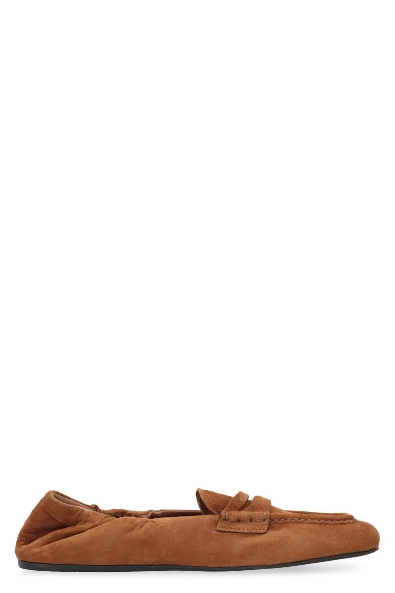 Suede Ruches Loafers Upper made of lambskin with clamp. The insole is made of leather and the outsole is made of rubber. Print logo on the front. 100% Lamb Gender: Women Material: LAMB Color: BROWN Made in: Italy Product ID: 5D341EFD005008_F0316 *Import tax/duty will be calculated at checkout (If applicable)