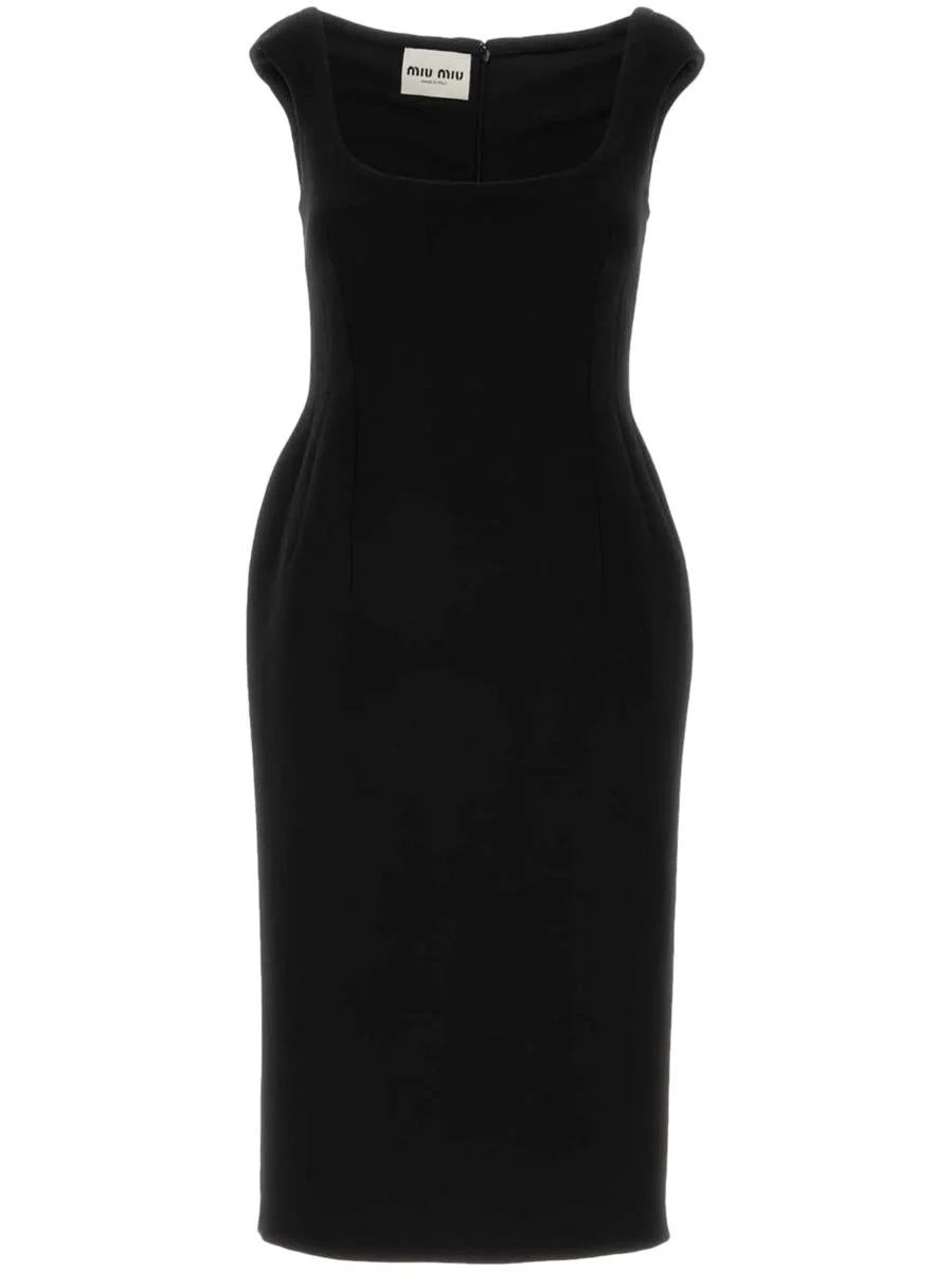 Highlights black virgin wool concealed rear zip fastening square neck sleeveless fitted waistline rear slit straight hem mid-length   Composition Virgin Wool 100% Gender: Women Material: 100%VIRGIN WOOL Color: Black Made in: Imported Product ID: MF5551SOOOS31 F0002 NERO *Import tax/duty will be calculated at checkout (If applicable)