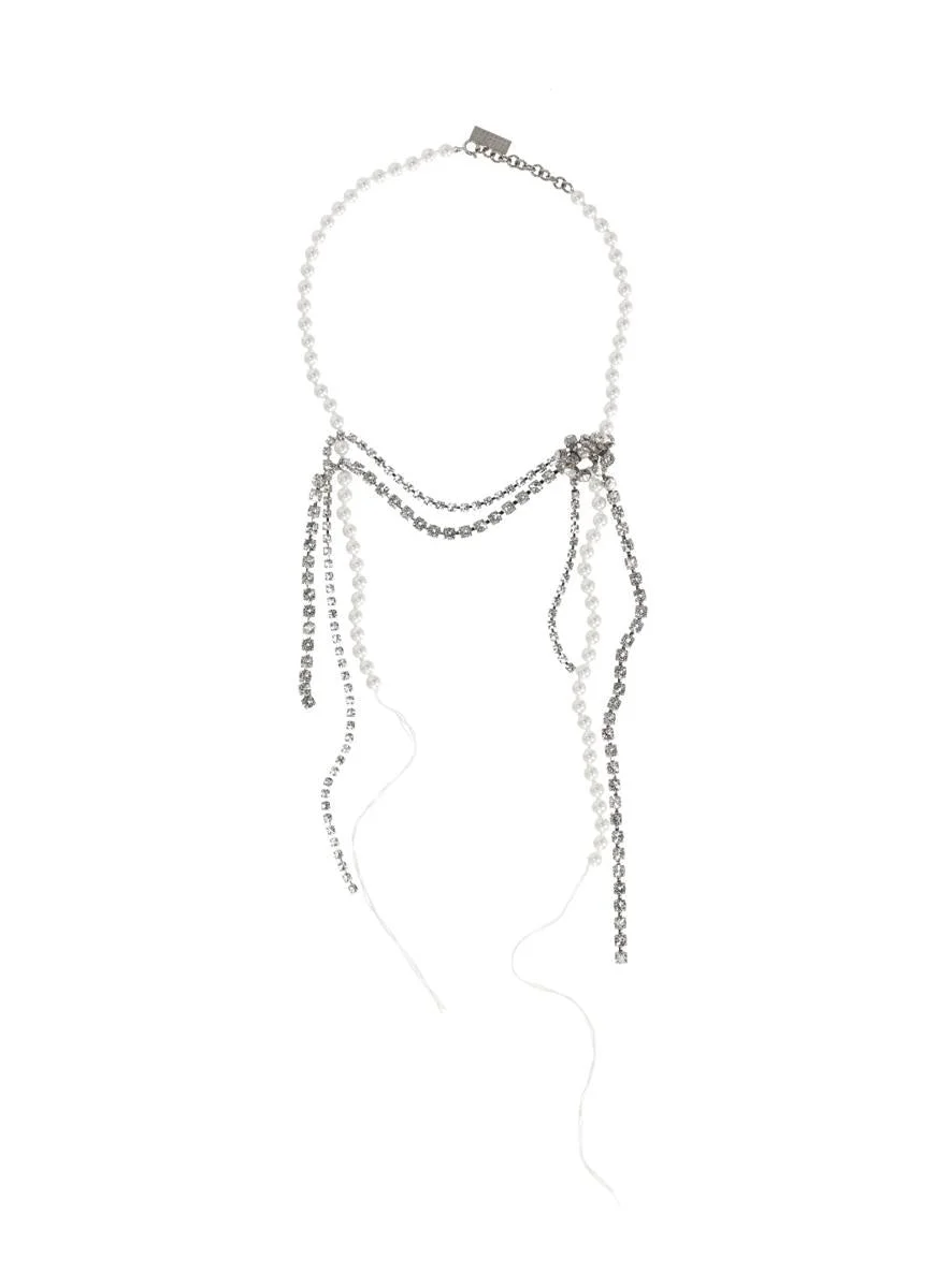 - Silver and white MM6 brass necklace for woman - Rear hook fastening - Decoration with synth pearls and strass - Metal charm with numeric logo Gender: Women Material: 100% BRASS DETAILS: 100% GLASS Color: MULTICOLOUR Made in: Italy Product ID: SM7UU0082P7352971 *Import tax/duty will be calculated at checkout (If applicable)
