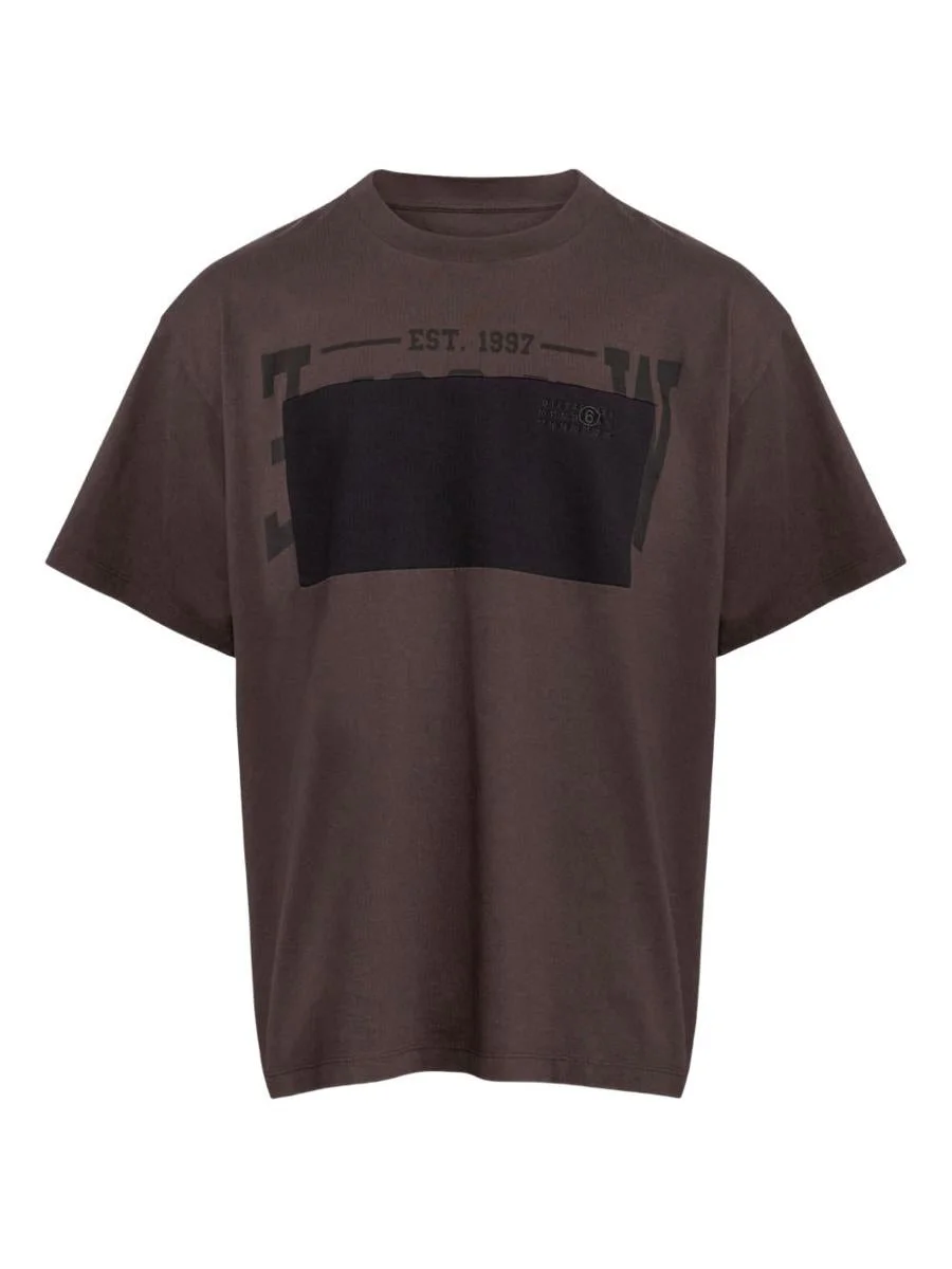 Brown cotton crew neck T-shirt by MM& Maison Margiela with print Gender: Men Material: .100% COTTON Color: BROWN Made in: Italy Product ID: SH0GC0053 M20050 143 *Import tax/duty will be calculated at checkout (If applicable)