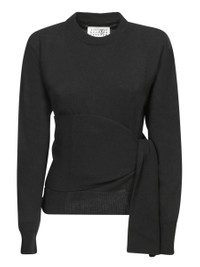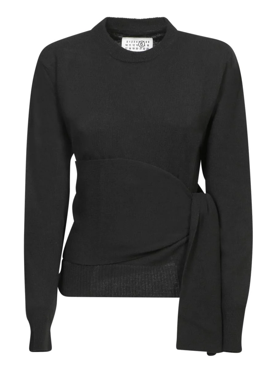 Black wool sweater. Wrap design with asymmetric cut. Crew neck and long sleeves. Striking a perfect balance between comfort and modern style, this MM6 Maison Margiela wrap sweater features an intriguing and sophisticated silhouette, ideal for a distinctive look. Gender: Women Material: 80% WOOL 20% POLYAMIDE Color: Black Made in: Imported Product ID: S52HL0027 M13048 900 *Import tax/duty will be calculated at checkout (If applicable)