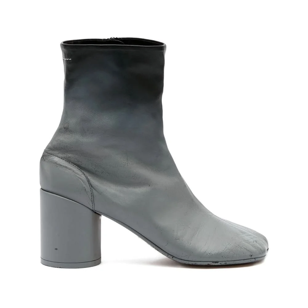Grey zip fastening tabi toe chunky block heel Gender: Women Material: SOLE COMPOSITION CALF LEATHER: 100.0%, OUTER COMPOSITION LAMB SKIN: 100.0%, LINING COMPOSITION LEATHER: 100.0% Color: GREY/BLUE Made in: Italy Product ID: P7439 S66WU0131 HB098 *Import tax/duty will be calculated at checkout (If applicable)