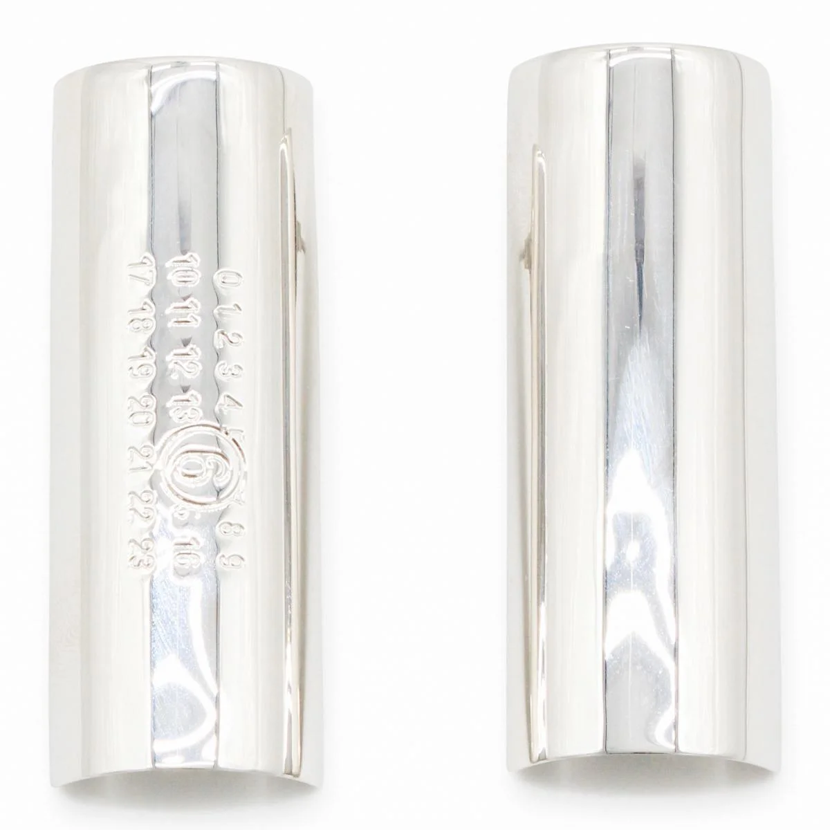 Silver brass earrings from Mm6 Maison Margiela featuring silver tone, brass, frontal logo detail and back fastening. Size Type: Unique Gender: Women Material: 100% BR + 100% AG Color: POLISHED PALLADIO Made in: Italy Product ID: SM7VG0106P8754951 *Import tax/duty will be calculated at checkout (If applicable)