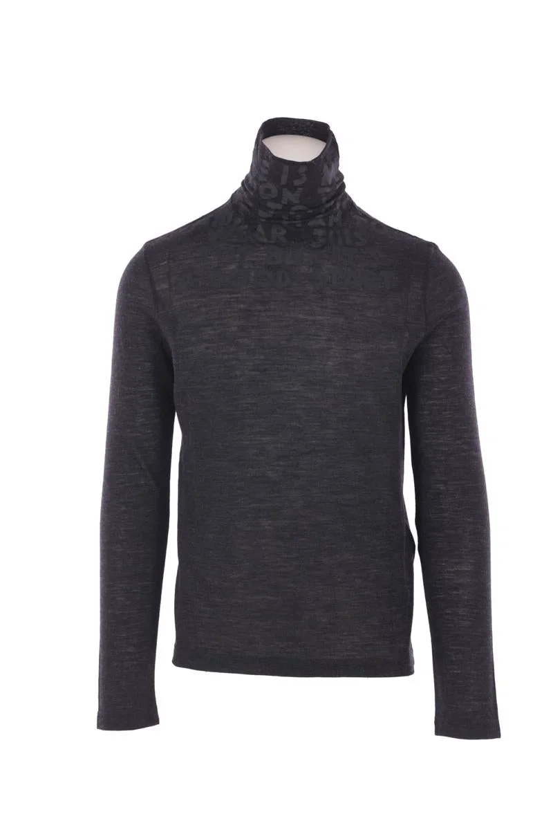 MM6 turtleneck made of black lightweight wool knit with tonal text print. Featuring a high neck, long sleeves, and a straight hem. The design is completed by the Maison’s signature white stitching on the back. Gender: Men Material: TESSUTO PRIMARIO: 100% WOOL Color: OFF BLACK Made in: Italy Product ID: SH2NH0011M20123899 *Import tax/duty will be calculated at checkout (If applicable)