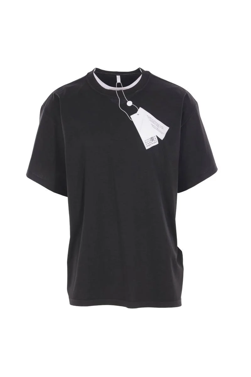 MM6 t-shirt made of black and white cotton jersey with a trompe-l'œil effect screen-printed graphic. Featuring a crew neckline, short sleeves, and a straight hem. The design is completed by the Maison's signature white stitching on the back. Gender: Men Material: TESSUTO PRIMARIO: 100% COTTON Color: WHITE Made in: Italy Product ID: SH2GC0029M20048100 *Import tax/duty will be calculated at checkout (If applicable)