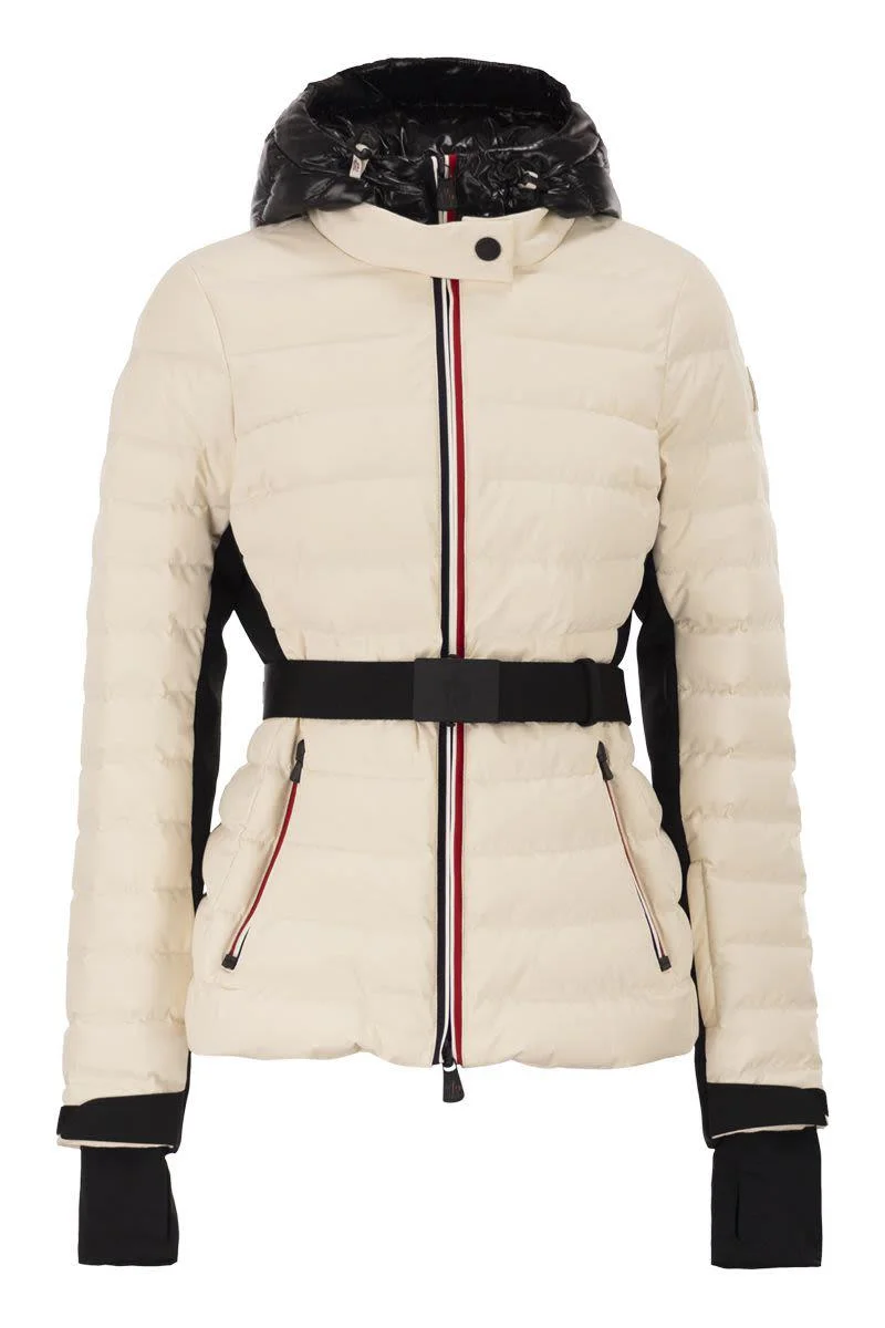The Bruche Women's Down Jacket embodies the performance of technical outerwear with a sophisticated design that emphasises the silhouette. Made from 4-way stretch technical poplin, this down jacket features waterproof zips, a windproof gaiter and cuffs with gaiters to adapt to the most extreme weather conditions. - Made from 2L technical 4-way stretch poplin - Stretch nylon lining - Padded design - Adjustable hood with lacquered nylon lining - YKK® AquaGuard® Highly Water-Resistant zip closure - YKK® AquaGuard® Highly Water-Resistant zip pockets - Internal smartphone pocket with YKK® AquaGuard® Highly Water-Resistant zip - Ski pass pocket with YKK® AquaGuard® Highly Water-Resistant zip - Removable and adjustable belt - Windproof gaiter - Adjustable cuffs - Cuffs with stretch jersey gaiters DESIGNER ID: K20981A000645399D 060 Gender: Women Material: 84% POLYAMIDE, 16% ELASTANE BODY LINING: 95% POLYAMIDE, 5% ELASTANE SLEEVES LINING: 89% POLYESTER, 11% ELASTANE BOTTOM LINING AND DETAILS PADDING: 100% POLYESTER HOOD: 100% POLYAMIDE 1 MATERIAL: 48% POLYESTER, 33% POLYAMIDE, 19% ELASTANE 2 MATERIAL: 83% POLYAMIDE, 17% ELASTANE FILLING PURE GOOSE DOWN: 90% DOWN, 10% FEATHER Color: Beige Made in: Romania Product ID: K20981A000645399D 060 *Import tax/duty will be calculated at checkout (If applicable)