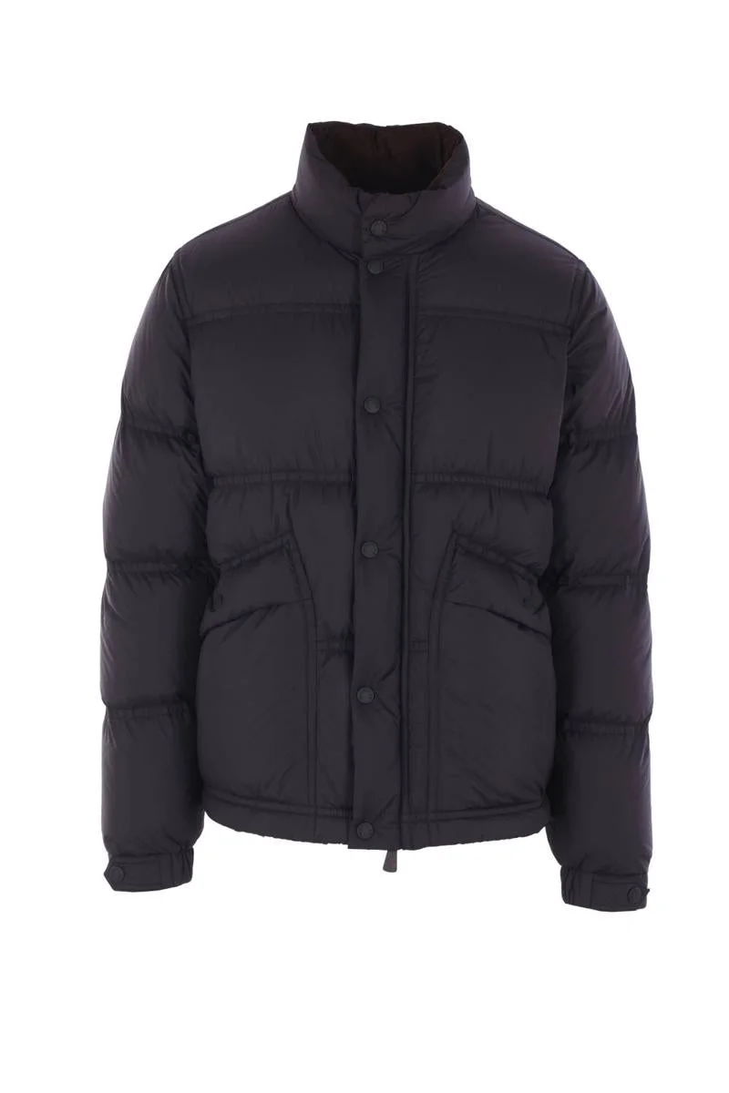 Moncler Grenoble down jacket crafted from black nylon with logo patch on the left sleeve. Featuring high collar with brown corduroy lining, two-way zip and snap button closure, front pockets, long sleeves with elasticated cuffs, straight hem with drawstring, and faux fur-lined interior. Gender: Men Material: COLLAR:100%COTTON-BASE FAB:100%POLYAMIDE/NYLON LIN:97%POLYESTER+3% ELASTANE-SLEEVES LIN:100%POLYESTER-DETAILS PADDING:100%POLYESTER Color: Black Made in: Imported Product ID: K20971A00046596TM999 *Import tax/duty will be calculated at checkout (If applicable)