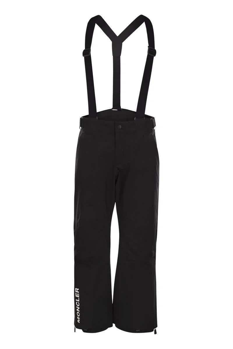 Designed for alpine skiing, these ski trousers with braces are made of GORE-TEX. The technical fabric enhances the model by offering protection from water and wind, while the breathable finish helps regulate temperature. Optimised for warmth, these padded trousers feature heat-taped seams and a windproof leg bottom. - Water-repellent - Waterproof - Windproof - Insulating - Breathable - Details - Designed for alpine skiing - Made from 2L of technical GORE-TEX plain weave fabric - Technical stretch nylon lining - Padded model - Heat-taped seams - Shoulder straps - Adjustable waistband - YKK® AquaGuard® Highly Water Resistant zip and snap fastener - Flush side pockets - YKK® AquaGuard® Highly Water-Resistant zipped back pocket - RECCO® reflector - Leg bottom with YKK® AquaGuard® Highly Water-Resistant zip - Windproof leg bottoms - Reinforced hems - Adhesive and embossed logo details - Embossed silicone logo DESIGNER ID: J20972G00003549SU 999 Gender: Men Material: 100% POLYESTER LINING 1: 92% POLYESTER, 8% ELASTANE LINING 2: 100% POLYESTER BOTTOM LINING AND 1 MATERIAL: 100% POLYAMIDE PADDING: 100% POLYESTER Color: Black Made in: IMPORTED Product ID: J20972G00003549SU 999 *Import tax/duty will be calculated at checkout (If applicable)