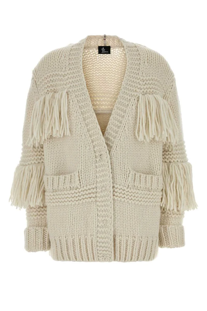 Fringe-Trim Wool Blend V-Neck Cardigan