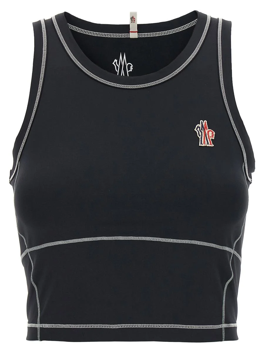 Stretch nylon blend fabric top with contrast stitching, front logo patch, crop style, crew neck Gender: Women Material: 78% POLYAMIDE, 22% ELASTANE Color: Black Made in: Italy Product ID: K10988P00001899YG999 *Import tax/duty will be calculated at checkout (If applicable)