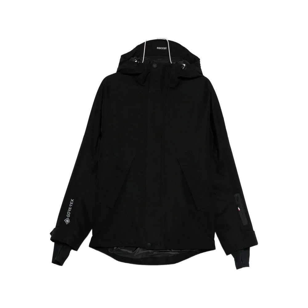Black hooded neckline long sleeves concealed fastening side pockets logo detail Gender: Men Material: OUTER COMPOSITION POLYAMIDE: 83.0%, OUTER COMPOSITION POLYESTER: 100.0%, LINING COMPOSITION POLYESTER: 100.0%, OUTER COMPOSITION SPANDEX/ELASTANE: 17.0% Color: Black Made in: Romania Product ID: 597MO 1A000-16 999 *Import tax/duty will be calculated at checkout (If applicable)
