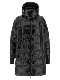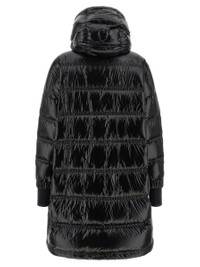 Long 'Rochelairs' down jacket in ultra-light water-repellent quilted nylon laque with goose down padding, adjustable and removable hood, high neck, YKK® AquaGuard® Highly Water-Resistant 2-way zip closure on the front, pockets, long sleeves with elastic cuffs, windproof gaiter, dropped shoulder and logo patch applique, drawstring on the hem Gender: Women Material: 100% POLYAMIDE Color: Black Made in: Romania Product ID: K20981C000035981E999 *Import tax/duty will be calculated at checkout (If applicable)