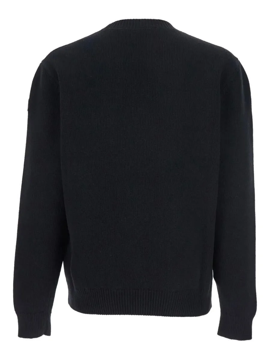 black crew neck ribbed trims applique logo patch embroidered details wool knit Gender: Men Material: BASE FABRIC: 100%VIRGIN WOOL Color: Black Made in: Imported Product ID: K20919C00004M1242 999 BLACK *Import tax/duty will be calculated at checkout (If applicable)