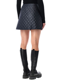 The Moncler diamond-quilted mini skirt blends femininity and function in a refined silhouette. Crafted from glossy nylon leger, it features an A-line cut that flatters the figure while ensuring lightness and warmth. The diamond quilting adds a chic textural touch, making it ideal for both day and evening styling. Mini skirt in glossy nylon leger Diamond geometric quilting A-line silhouette Zip closure Logo patch at front Alessandra is 1,75 m and wears size 40 Gender: Women Material: 100% POLYAMIDE LINING 100% POLYAMIDE PADDING 100% POLYESTER Color: NAVY Made in: Hungary Product ID: 25A2D00014788RA#778 *Import tax/duty will be calculated at checkout (If applicable)