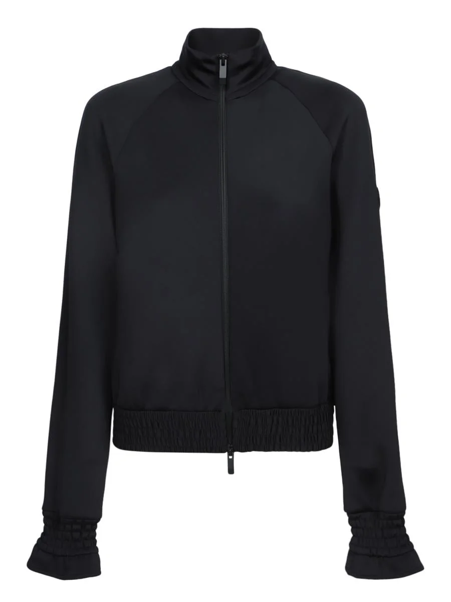Jacket featuring a zip closure, high collar, long sleeves with elastic cuffs, and an elastic hem. An elegant Moncler take on the classic cardigan, crafted in black technical fabric with elasticated details for comfort and versatility. Gender: Women Material: 87% POLYESTER 13%ELASTANE Color: Black Made in: Imported Product ID: 8G00007 89A8K 999 *Import tax/duty will be calculated at checkout (If applicable)