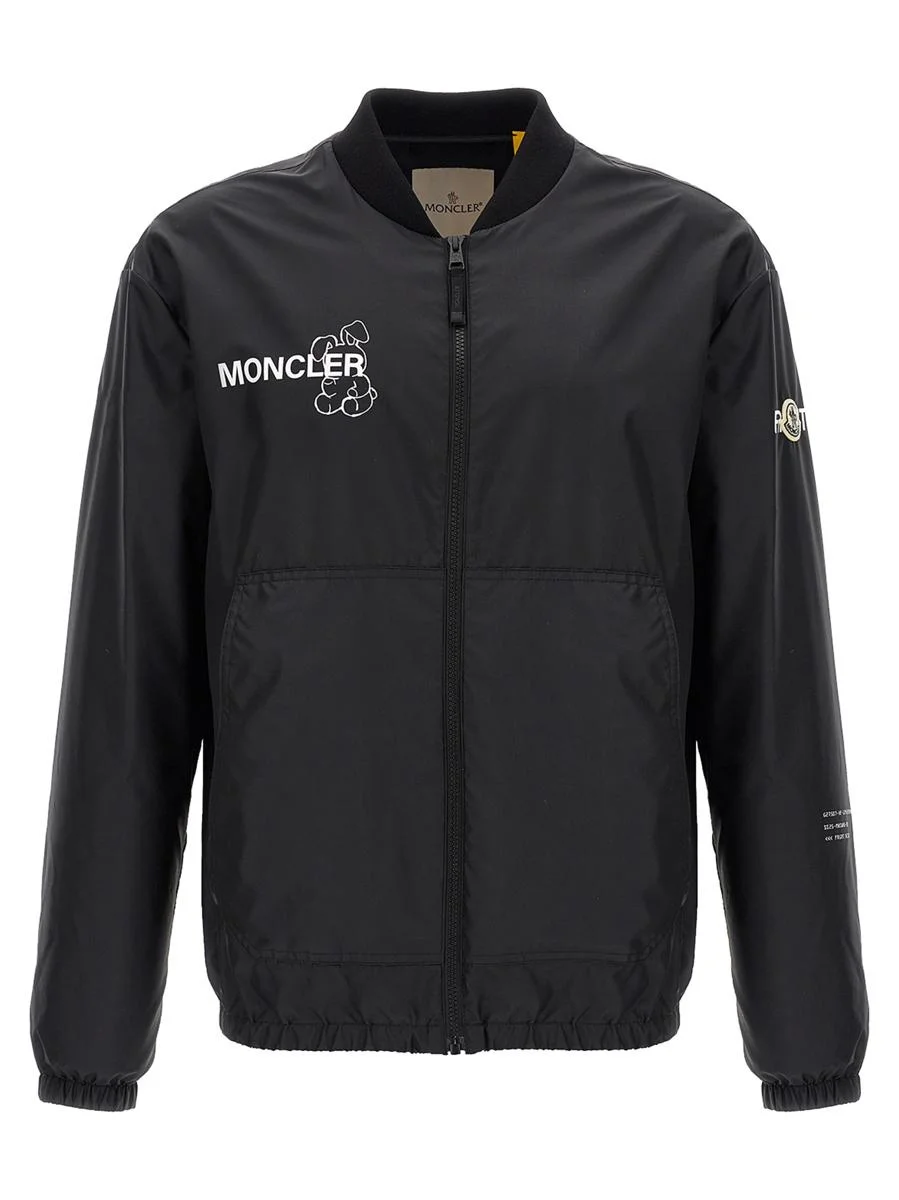 Moncler x FRGMT 'Ostria' bomber jacket in water-repellent coated nylon canvas with prints at the back and on the sleeves, ribbed cotton collar, zip closure, pockets, long sleeves with elastic cuffs, felt logo patch, and elastic hem. The garment is embellished with printed bunnies created by Nayeon & Rang, a Korean illustration studio known for operating on the K-pop scene Gender: Men Material: 100% POLYAMIDE Color: Black Made in: RO Product ID: K109U1A00009M5238999 *Import tax/duty will be calculated at checkout (If applicable)