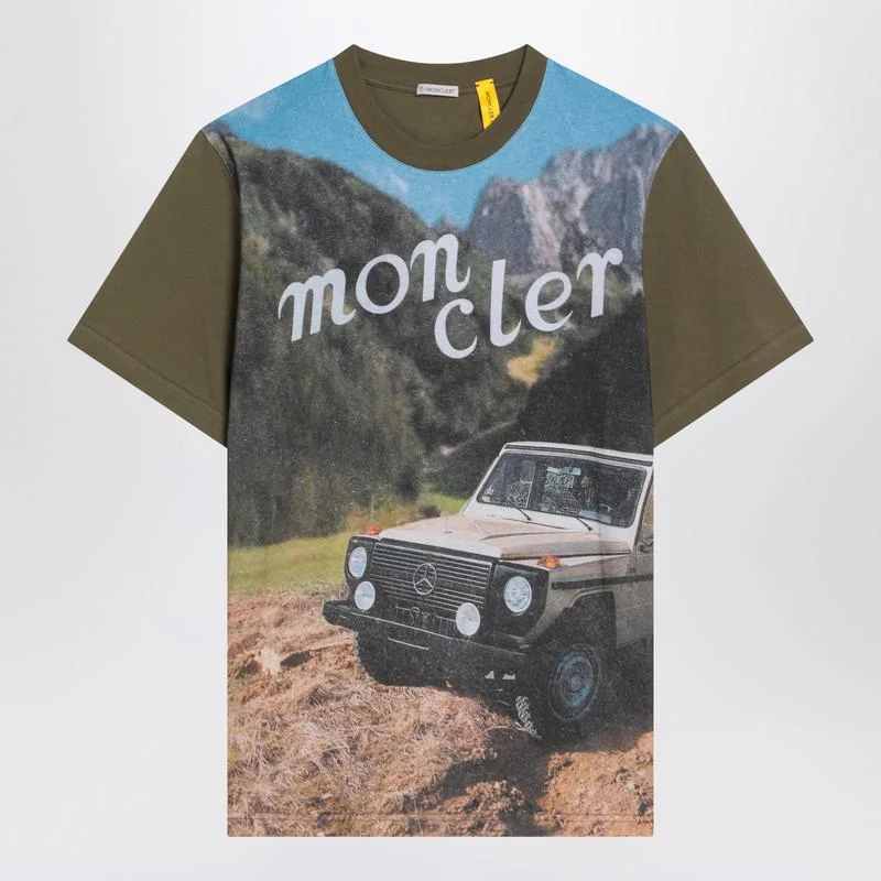 T-shirt by Moncler Genius X Mercedes-Benz by Nigo crafted from cotton jersey, featuring crew neck, short sleeves, printed car logo motif and logo patch. Gender: Men Material: 100% Cotton Color: GREEN Made in: Imported Product ID: 8C000-0389AB9/Q_MONGE-816 *Import tax/duty will be calculated at checkout (If applicable)