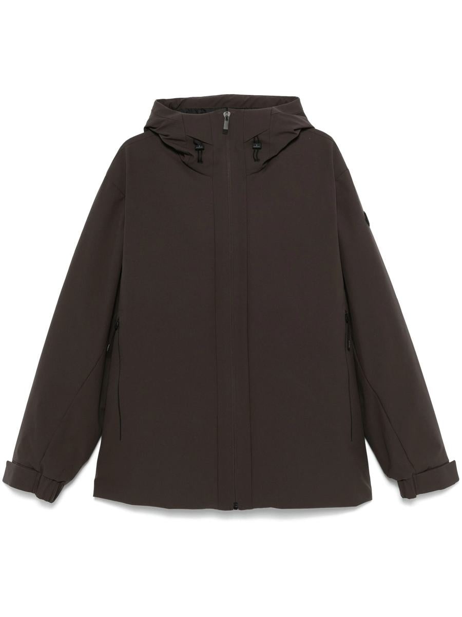 Highlights coffee brown goose down front zip fastening drawstring hood long sleeves with touch-strap cuffs logo patch at the sleeve two side zip-fastening pockets quilted lining drawstring hem   Composition Lining: Polyester 100%, Goose Down 90%, Goose Feather 10% Outer: Elastomultiester 100%  Gender: Men Material: OUTER: 100%POLYESTER Color: BROWN Made in: Imported Product ID: J20911A00142597RP 243 BROWN *Import tax/duty will be calculated at checkout (If applicable)