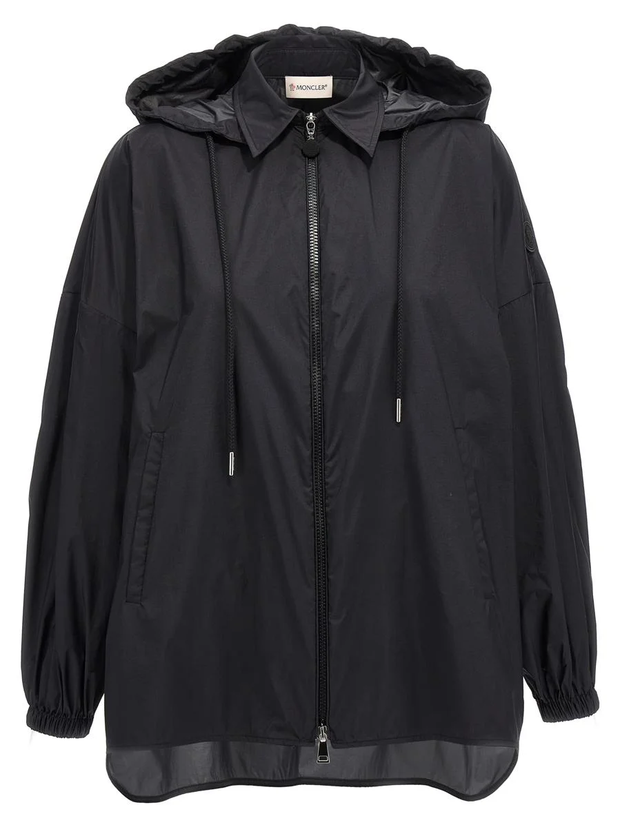 Windbreaker in tech fabric without lining, back ruffle detail, removable hooded shirt collar, front zip closure, pockets, long sleeves with dropped shoulders, elastic cuffs and tone-on-tone logo patch applique, side slits, and asymmetric hem Gender: Women Material: 100% POLYAMIDE Color: Black Made in: HU Product ID: K10932F00013596TM999 *Import tax/duty will be calculated at checkout (If applicable)