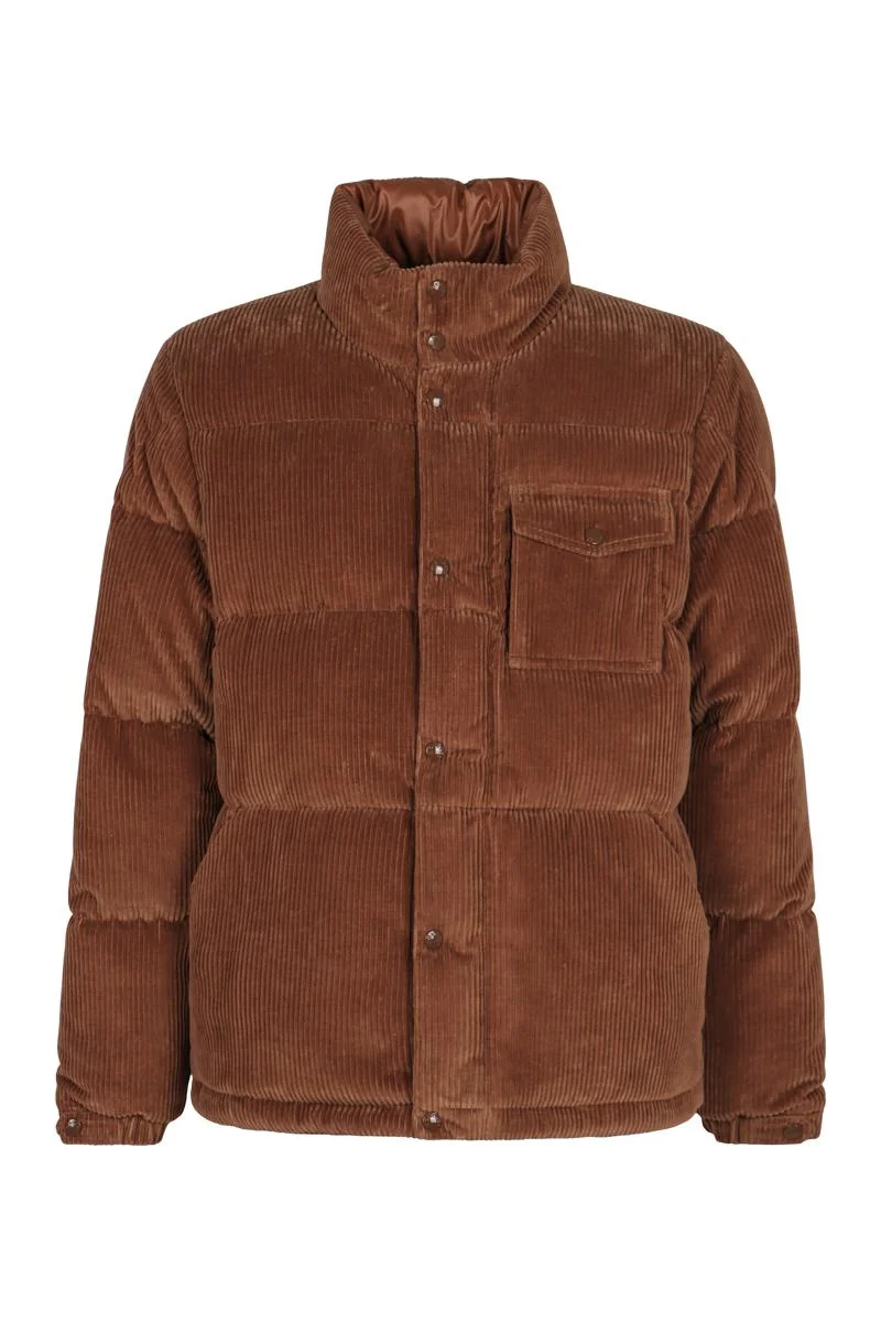 Short puffer jacket Serrant in ribbed velvet Padded jacket in warm brown shades, characterized by a practical and contemporary design. It features a front closure with a zip and buttoned flap, a high collar, two side pockets, and a pocket on the left side of the chest with a flap and button. The padded structure ensures comfort and warmth, making it ideal for the winter season. Perfect for a casual and versatile look, it is suitable for leisure time and outdoor activities. Padding: 90% Down, 10% Feather Size guide Moncler Man: 00 = 42 IT - XXS 0 = 44 IT - XS 1 = 46 IT - S 2 = 48 IT - M 3 = 50 IT - L 4 = 52 IT - L 5 = 54 IT - XL 6 = 56 IT - XXL 7 = 58 IT - XXL 100% Cotton, 100% Polyester Gender: Men Material: COTTON Color: BROWN Made in: Romania Product ID: K20911A00197598XG_26I *Import tax/duty will be calculated at checkout (If applicable)