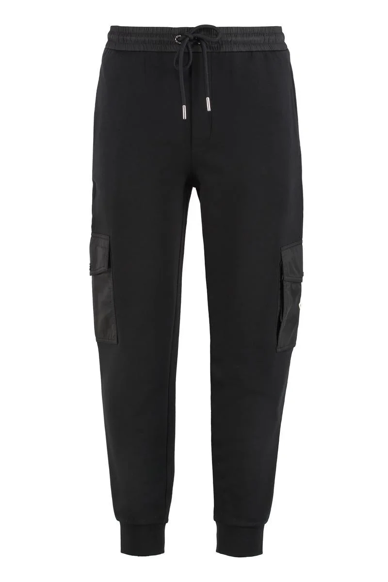 Sporty Pants in Cotton Blend Comfortable and versatile pants in solid black, made from a soft fabric combining soft cotton jersey with shiny nylon details. They feature an elasticized waistband with a drawstring for an adjustable fit, two side pockets, and practical flap pockets along the legs for a functional touch. The tapered cut fits the silhouette perfectly, making these pants ideal for various occasions, from sporty to casual. Perfect to pair with a t-shirt or a sweatshirt for a contemporary and informal look. 100% Polyamide, 87% Cotton, 13% Polyamide, 95% Cotton, 5% Elastane Gender: Men Material: POLYAMIDE Color: Black Made in: Imported Product ID: K20918H0002389A8F_999 *Import tax/duty will be calculated at checkout (If applicable)