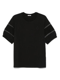 black crew neck short sleeves elasticated cuffs straight hem Gender: Women Material: 1 MATERIAL: 100%SILK - 2 MATERIAL: 85%COTTON + 15% POLYAMIDE/NYLON - EMBROIDERY: 88%COTTON + 12% POLYESTER - BASE FABRIC: 100%COTTON Color: Black Made in: Imported Product ID: K10938C0003289ADC 999 BLACK *Import tax/duty will be calculated at checkout (If applicable)