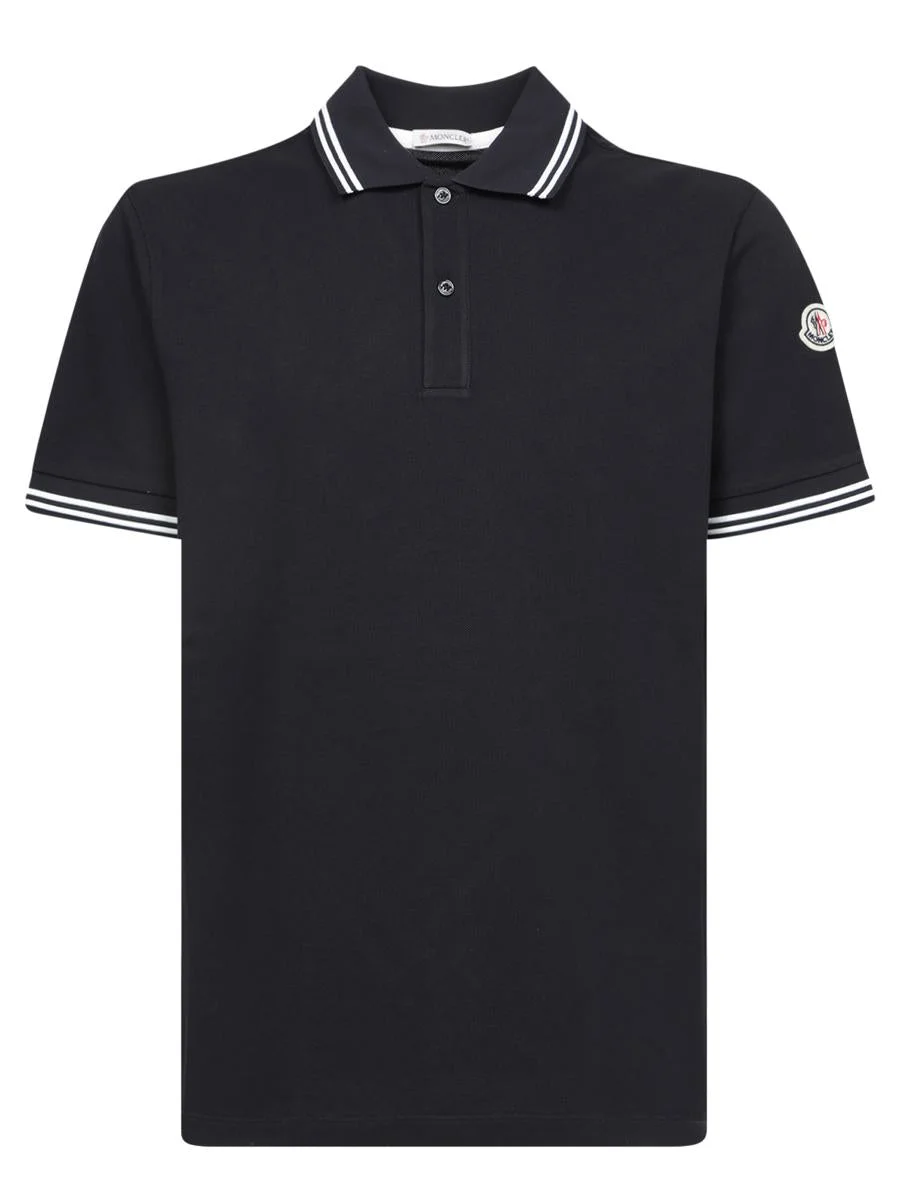 Short sleeve. Collar with white stripes. Moncler logo on the sleeve. This Moncler Navy polo blends comfort and elegance. Featuring a distinctively decorated collar and a sleeve finished with a stripe detail, it's perfect for a casually sophisticated look. Gender: Men Material: 100%COTTON Color: BLUE Made in: Imported Product ID: 8A00007 89A16 77X *Import tax/duty will be calculated at checkout (If applicable)