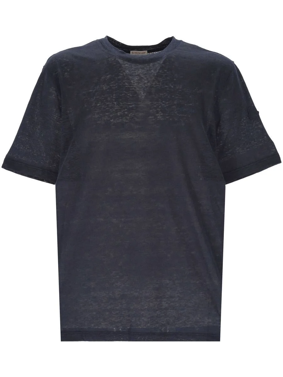 navy blue distressed finish crew neck short sleeves logo detail on sleeve Gender: Men Material: BASE FABRIC 100%FLAX Color: MULTICOLOR Made in: Romania Product ID: 918C000-7189AZB76I *Import tax/duty will be calculated at checkout (If applicable)
