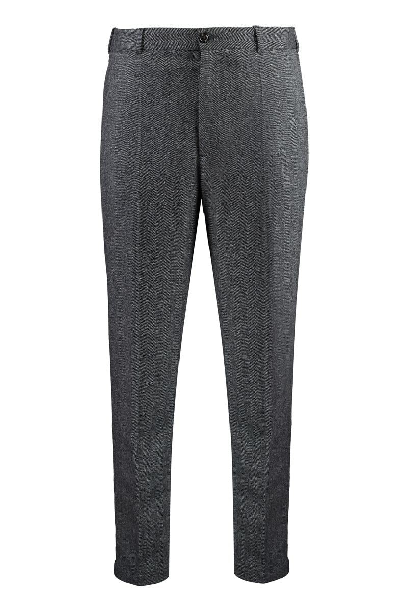 Wool blend trousers Herringbone tweed fabric Two back buttoned welt pockets 100% Calf, 80% Virgin wool, 20% Polyamide Gender: Men Material: CALF Color: Black Made in: RO Product ID: J20912A000445984D_F99 *Import tax/duty will be calculated at checkout (If applicable)