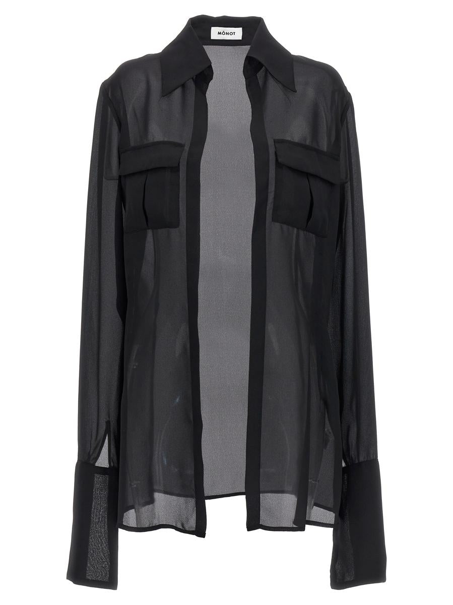 Georgette' shirt in a transparent fabric with front pockets, no fastening Gender: Women Color: BLACK Made in: ANDORRA Product ID: SS23208BLACK *Import tax/duty will be calculated at checkout (If applicable)