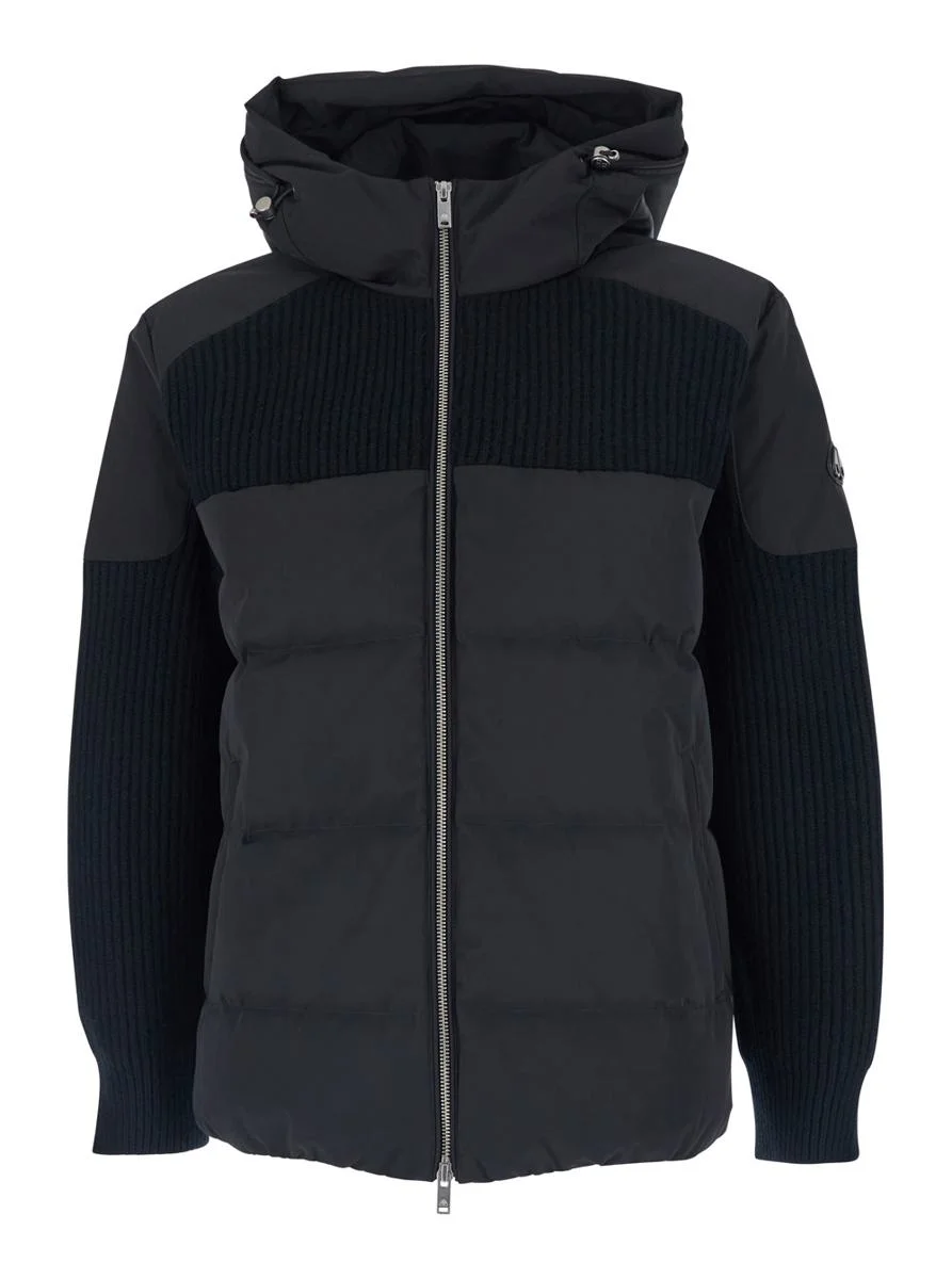 Moose Knuckles 'Glenvale' Black Jacket With Drawstring Hood And Logo Plaque On The Sleeve In Wool Ma