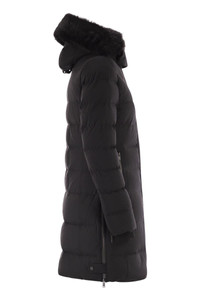 The Watershed 3 Parka is made from soft, durable Nyluxe fabric that is water-repellent and windproof, offering a luxurious feel without compromising on performance. Padded with 90/10 duck down and finished with a padded collar, windproof cuffs and a removable hood, it is designed to withstand the elements while keeping you warm and comfortable. - Removable hood with removable sheepskin trim - Down-filled collar - 2-way zip - 2 zipped pockets - Logo patch DESIGNER ID: M35LP228S 305 Gender: Women Material: 76% NYLON, 24% ELASTANE LINING: 100% RECYCLED NYLON FILLING: 90% DUCK DOWN, 10% FEATHERS SHEEP SHEARLING (ORIGIN CANADA) Color: Black Made in: Imported Product ID: M35LP228S 305 *Import tax/duty will be calculated at checkout (If applicable)