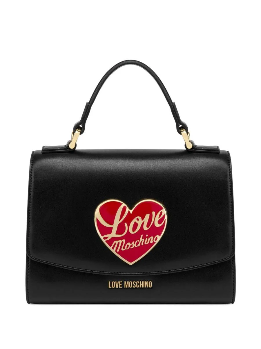 Black crossbody bag from Love Moschino featuring a foldover top with magnetic fastenings, single flat top handle, detachable shoulder strap, and logo lettering. A versatile and stylish accessory, perfect for adding a chic touch to everyday or evening outfits. Gender: Women Material: .100% POLYURETHANE Color: Black Made in: Imported Product ID: JC4181PP1N LP0 000 *Import tax/duty will be calculated at checkout (If applicable)