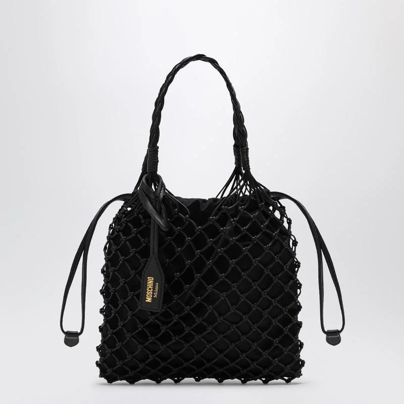 Small handbag by Moschino in black nappa leather, featuring woven handle, leather logo charm, drawstring fastening, removable satin sack lining and small inside pocket. Gender: WOMEN Material: 100% LEATHER AND TEXTILE MATERIALS Color: Black Made in: IT Product ID: A73028002/P_MOSCH-2555 *Import tax/duty will be calculated at checkout (If applicable)