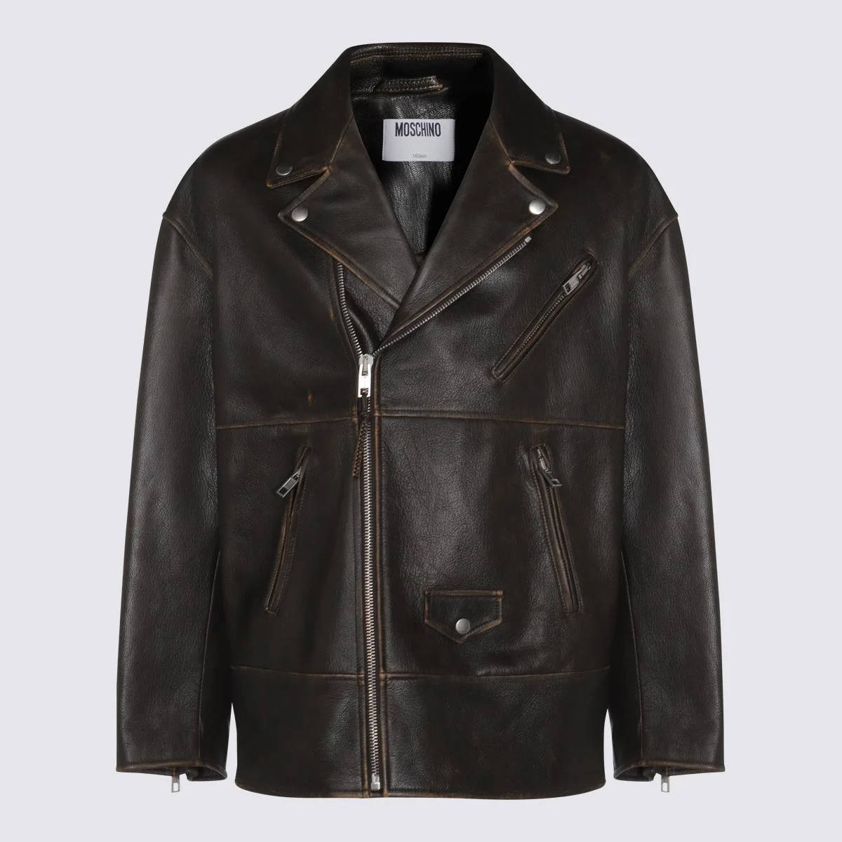 Brown leather jacket from Moschino featuring long sleeves, frontal zip fastening, pockets and regular vestibility. Size Type: Man IT Gender: Men Material: 100%CP Color: BROWN Made in: Italy Product ID: 252ZZ370152701101 *Import tax/duty will be calculated at checkout (If applicable)