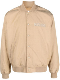 embroidered-logo bomber jacket from MOSCHINO featuring beige, embroidered logo, cutaway collar, ribbed edge, front press-stud fastening, two side welt pockets, long sleeves and ribbed edge. Gender: Men Material: POLYAMIDE 100% Color: BROWN Made in: IT Product ID: A0624 2015 0084 *Import tax/duty will be calculated at checkout (If applicable)