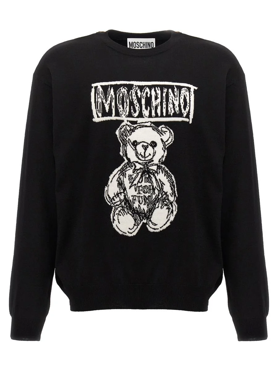 Wool sweater with front logo intarsia, crew neck, long cuffed sleeves Gender: MEN Material: 100% VIRGIN WOOL Color: BLACK Made in: Imported Product ID: V092670000555 *Import tax/duty will be calculated at checkout (If applicable)