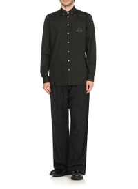 - Black Moschino cotton shirt for man - Collar - Short sleeves - Front contrasting color embroidered logo - Front buttons fastening Model's height is 190 cm and he wears a size S Gender: Men Material: 100% COTTON Color: Black Made in: Portugal Product ID: 022552351555 *Import tax/duty will be calculated at checkout (If applicable)