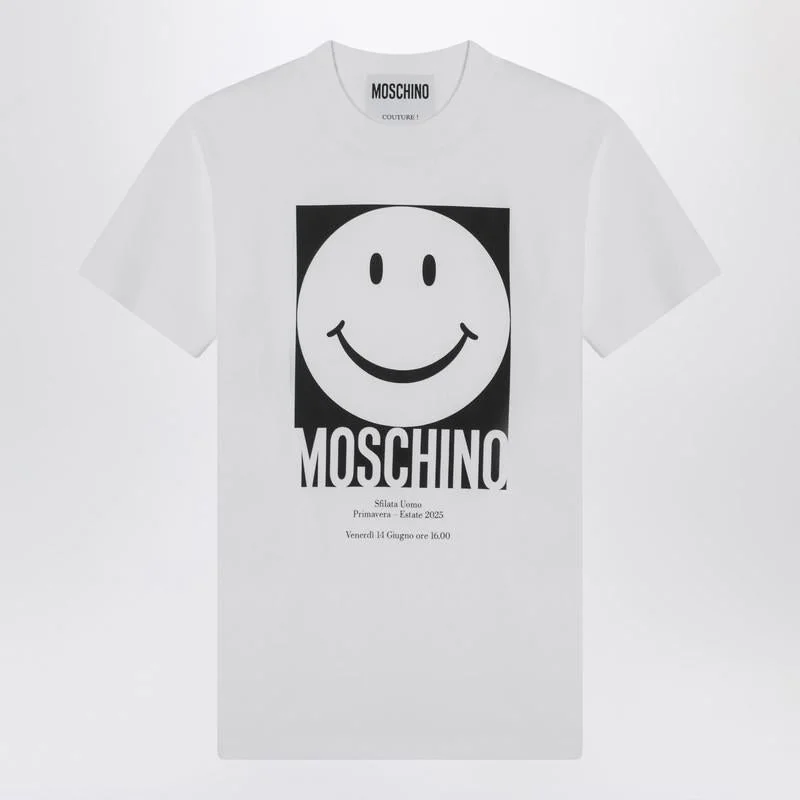 White cotton T-shirt by Moschino, featuring short sleeves, ribbed crew neck, and contrasting logo print on the front. Gender: Women Material: 100% Cotton Color: WHITE Made in: IT Product ID: J07160541/Q_MOSCH-1001 *Import tax/duty will be calculated at checkout (If applicable)