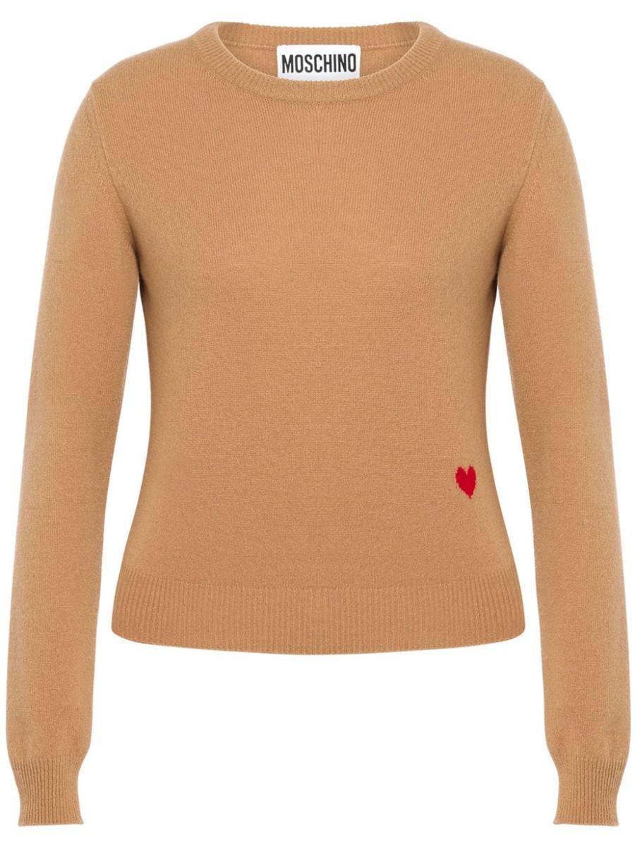 camel brown virgin wool-cashmere blend knitted construction heart motif crew neck long sleeves ribbed cuffs and hem pull-on style Gender: Women Material: WOOL 100% Color: BROWN Made in: IT Product ID: A0921 5509 0087 *Import tax/duty will be calculated at checkout (If applicable)