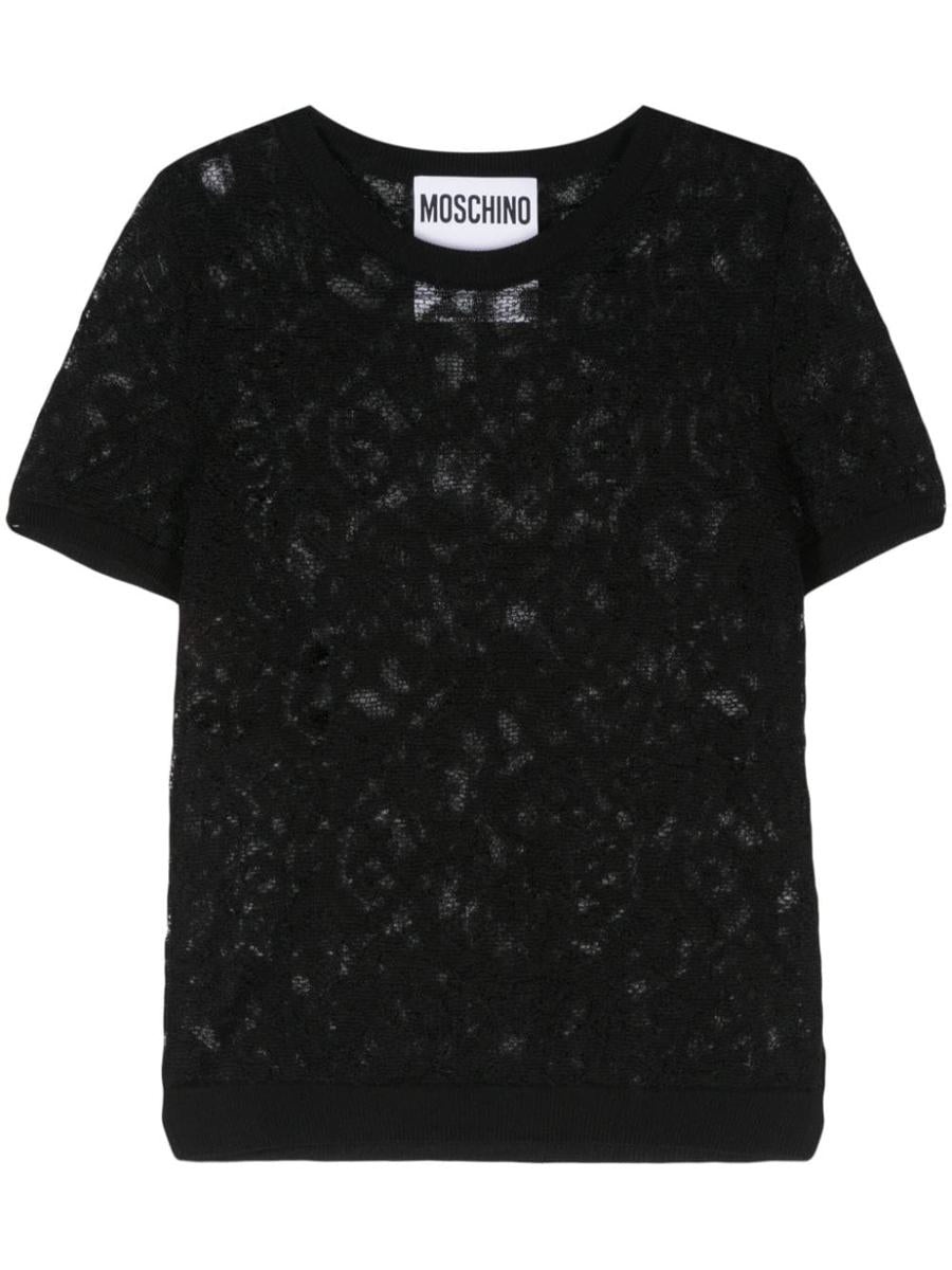 black cotton knitted construction patterned jacquard crew neck short sleeves ribbed cuffs and hem unlined Gender: Women Material: COTTON 82% POLYESTER 18% Color: Black Made in: IT Product ID: A0932 5508 0555 *Import tax/duty will be calculated at checkout (If applicable)