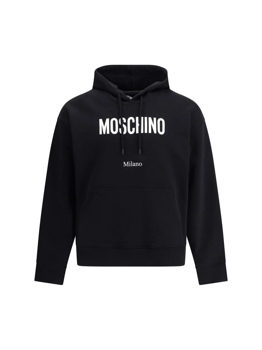 SIGNATURE MOSCHINO COTTON HOODIE, DRAWSTRING ADJUSTABLE HOOD AND POUCH POCKET ON FRONT. RIBBED CUFFS AND HEM ENSURE A COMFORTABLE FIT. THE DESIGN IS COMPLETED BY THE CONTRASTING MOSCHINO MONOGRAM PRINTED ON THE CHEST FOR A DISTINCTIVE AND CONTEMPORARY STYLE. STANDARD Gender: Men Material: COTTON Color: Black Made in: Portugal Product ID: 252ZZ1708252ZZ5228_1555 *Import tax/duty will be calculated at checkout (If applicable)