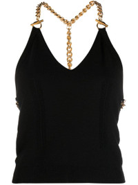 black virgin wool fine knit V-neck detachable chain-link straps sleeveless open back ribbed hem unlined Gender: Women Material: WOOL 100% Color: BLACK Made in: IT Product ID: J0882 0500 0555 *Import tax/duty will be calculated at checkout (If applicable)