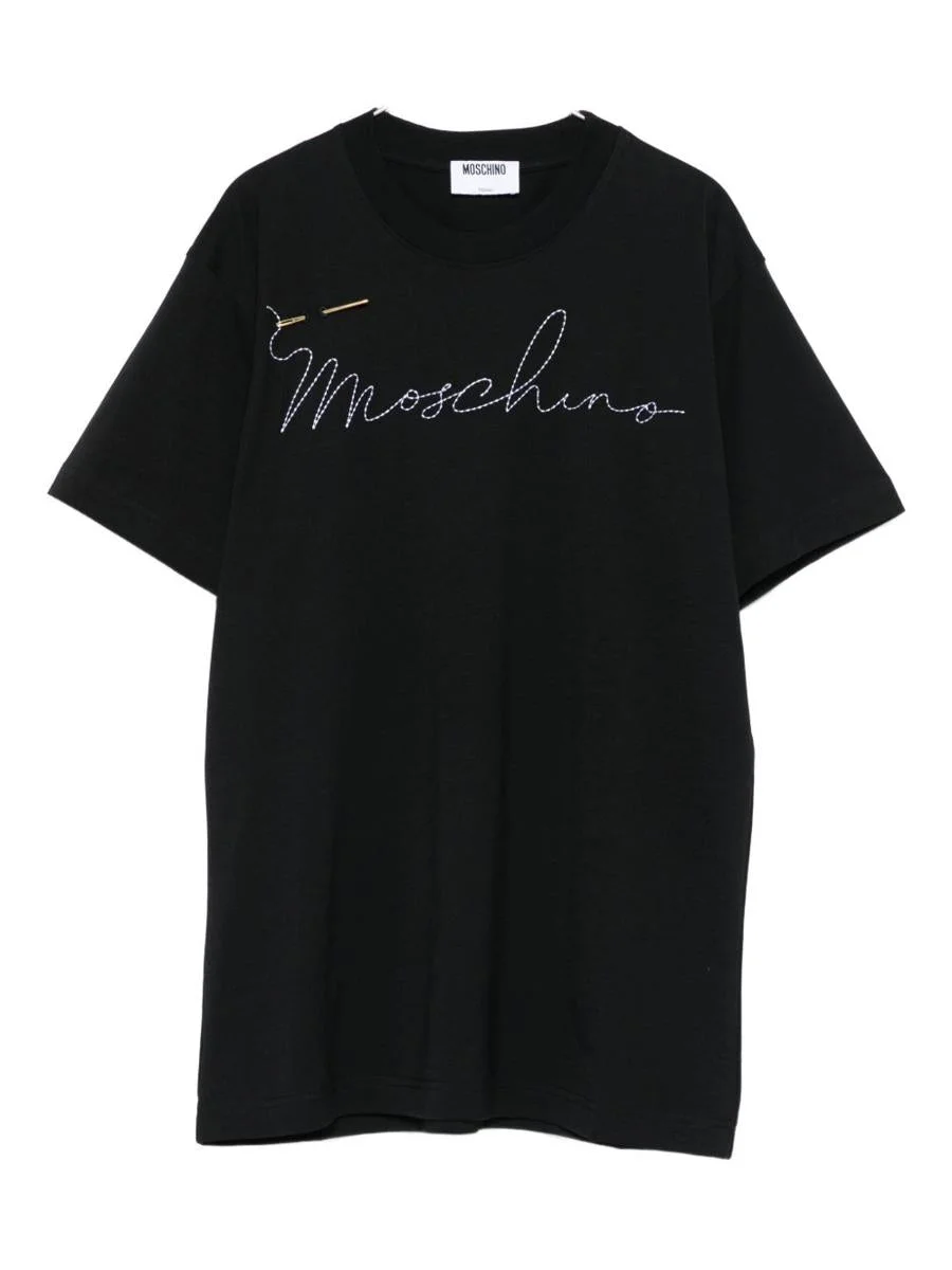 black embroidered logo short sleeves crew neck cotton Gender: Women Material: COTTON 100 % Color: Black Made in: Italy Product ID: A0710 5441 1555 *Import tax/duty will be calculated at checkout (If applicable)