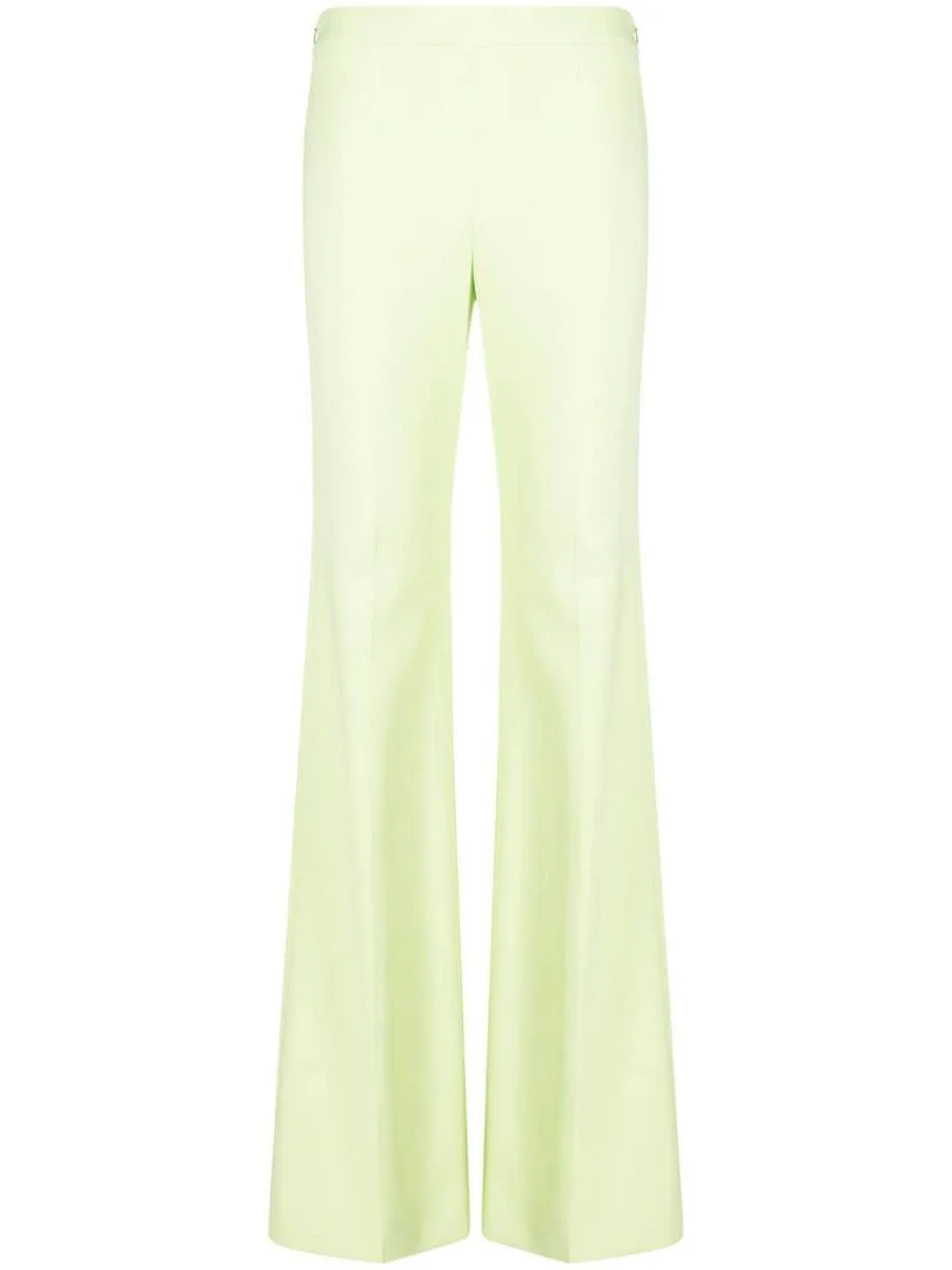 flared high-waist trousers from MOSCHINO featuring light green, tailored cut, flared design, high-waisted, pressed crease, concealed side zip fastening and floor-length. Gender: Women Material: VISCOSE 97% ELASTANE 3% Color: GREEN Made in: IT Product ID: A0331 0525 0449 *Import tax/duty will be calculated at checkout (If applicable)