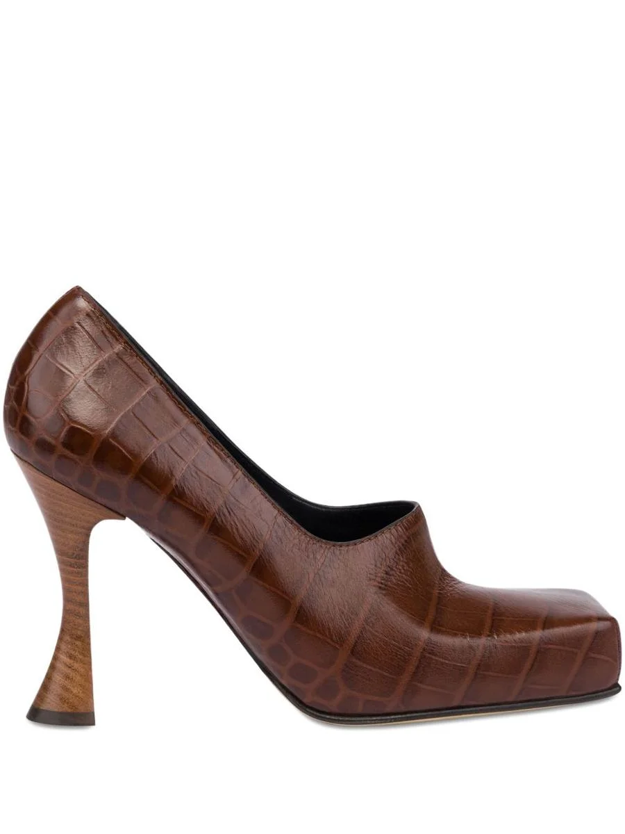 brown crocodile embossing square toe sculpted heel calf leather slip-on style Gender: Women Material: LEATHER 100 % Color: BROWN Made in: Italy Product ID: MA1013AC0N MN0 307 *Import tax/duty will be calculated at checkout (If applicable)