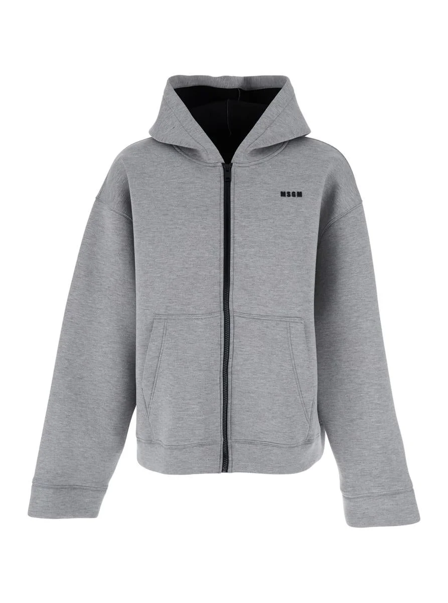 Msgm Grey Hoodie With Contrasting Logo Embroidery In Cotton Man